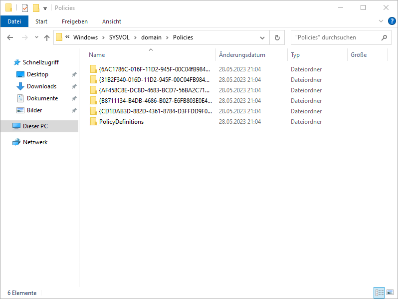 Als nächstes sollte auch überprüft werden, ob der Sysvol-Ordner erfolgreich repliziert und freigegeben wurde: